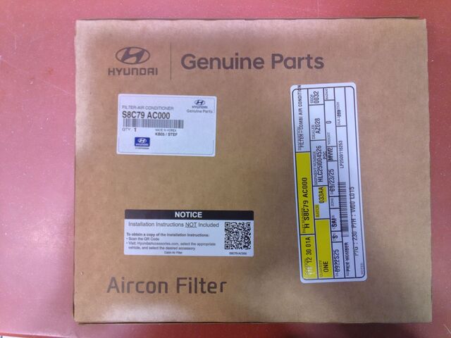 The Hyundai Cabin Air Filter (Part Number: S8C79-AC000, SKU: S8C79-AC000) is an essential maintenance component designed to keep the air inside your vehicle clean and breathable. This filter traps dust, pollen, dirt, and other airborne contaminants before they can enter the cabin through the HVAC system. Over time, cabin air filters become clogged, reducing airflow and allowing unpleasant odors or allergens to circulate. Replacing the filter at regular service intervals helps maintain comfort, protect passengers with allergies, and ensure the heating and cooling system runs efficiently.